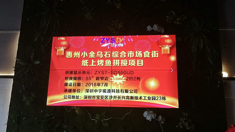 惠州小金口烏石綜合市場(chǎng)美食街紙上烤魚55寸拼接屏項(xiàng)目安裝調(diào)試完成并且順利驗(yàn)收!