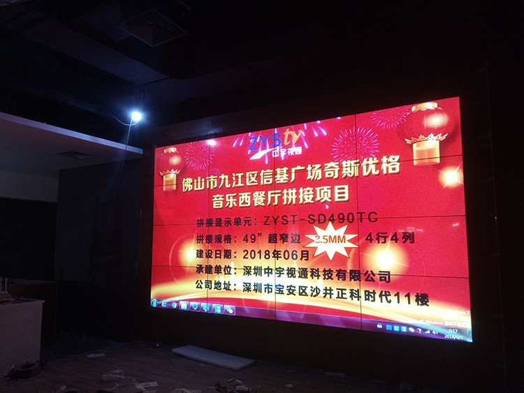 九江區(qū)信基廣場奇斯優(yōu)格音樂西餐廳49寸拼接屏項(xiàng)目