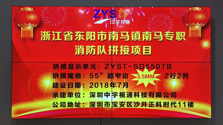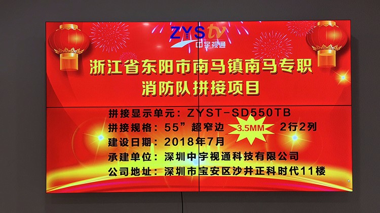 浙江省東陽市南馬鎮南馬專職消防隊55寸3.5拼接屏項目
