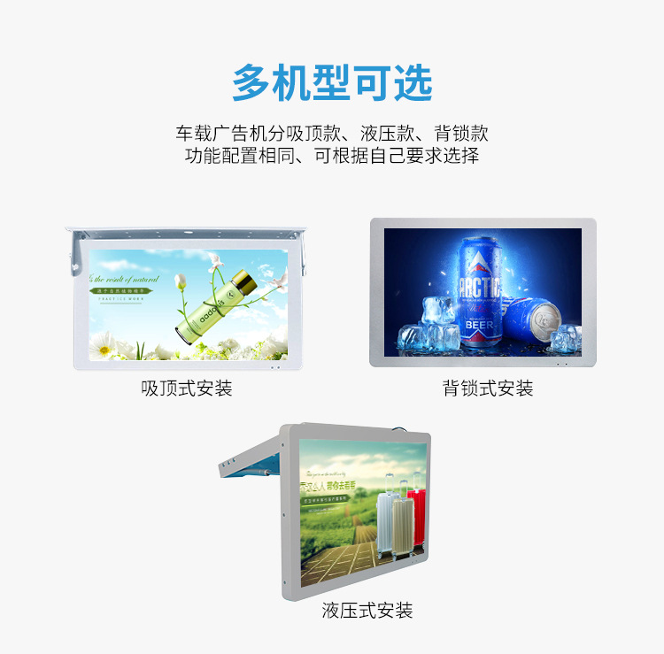 中宇視通是18.5寸車載廣告機(jī)生產(chǎn)廠家,我們提供吸頂車載廣告機(jī)、背掛車載廣告機(jī)、折疊式車載廣告機(jī)多種安裝方式,滿足各種車型,內(nèi)置抗振設(shè)計,減少車載環(huán)境內(nèi)震動對機(jī)器本身的影響,能讓機(jī)器在特殊情況中穩(wěn)定運(yùn)行。