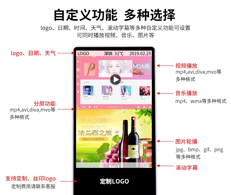 原裝進(jìn)口品牌LED高清顯示面板制作,畫(huà)質(zhì)顯示更清晰,功耗更低。